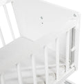 Bedside crib Zoya offers possibility of mounting the parents' bed at any level of the bottom of the cot, easy and quick disassembly of the cot, has adjustable brackets for mounting to the bed frame, can be used as free-standing, can be used with wheels.