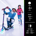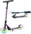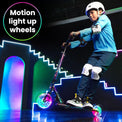 - MOTION-ACTIVATED LIGHTS – This light up scooter adopts patented lighting technology. Both the tyre and the core of clear wheels will be lighted up during the riding, which makes the scooter one the coolest riders on the planet