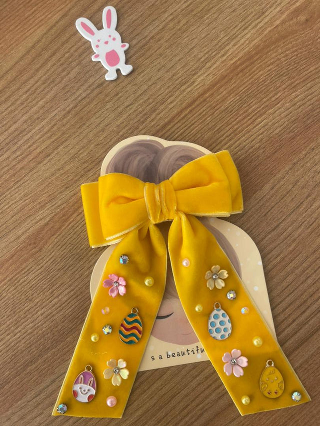 Bantyk Yellow Long Bow Easter Hair Clip