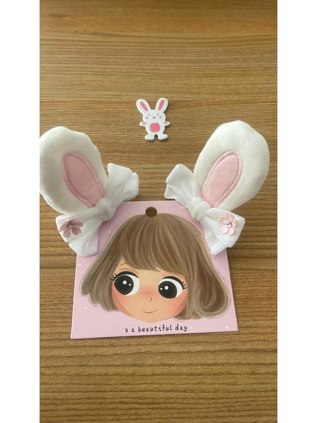 Bantyk Bunny Ears White Bow Easter Hair Clip